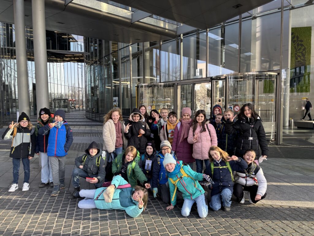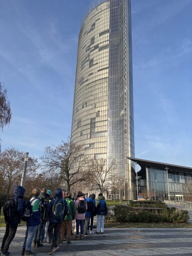 Die 4a hatte großes Glück und hat beim Briefmarken- Malwettbewerb der Aktion Weihnachtslicht eine Führung im Post Tower gewonnen. Am 20.01.26 war es soweit: Wir duften bis in die 30. Etage fahren und die Aussicht genießen. Am Ende gab es sogar noch einen Imbiss auf der 12. Etage. Das war großartig!